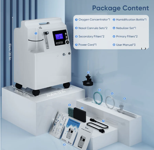 Lightweight Design: Weighing only 6kg, this portable O2 concentrator is easy to carry and ideal for home or on-the-go use.